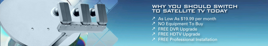 HDTV gives you greater picture detail with higher resolutions, truer color, clearer reception, a theater-like wide screen picture and multi-channel Dolby Digital surround sound. HD DVDs are great but Satellite TV offers you the most Movies, Sports, Special Events, News and other Programs that are broadcast in true High Definition. One other thing to keep in mind... Cable will make you buy your HDTV Receiver and when you call us right now, you will a FREE Upgrade to HDTV... NO EQUIPMENT TO BUY!!! So, use your HDTV Set to its full potential and call us right now at (866) 795-4195.